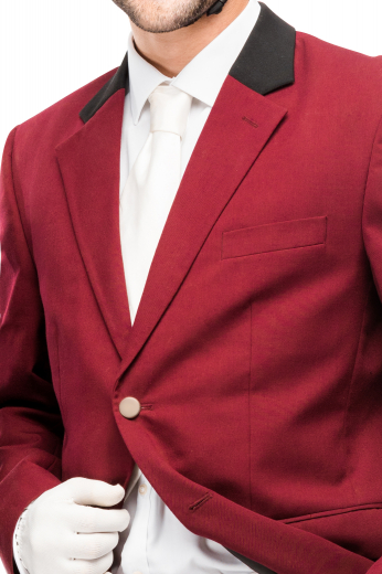 This men's red blazer is a very stylish option for any formal occasion! It is tailor made in a fine wool and cut to a slim fit, featuring single breasted button closure and notch lapels.